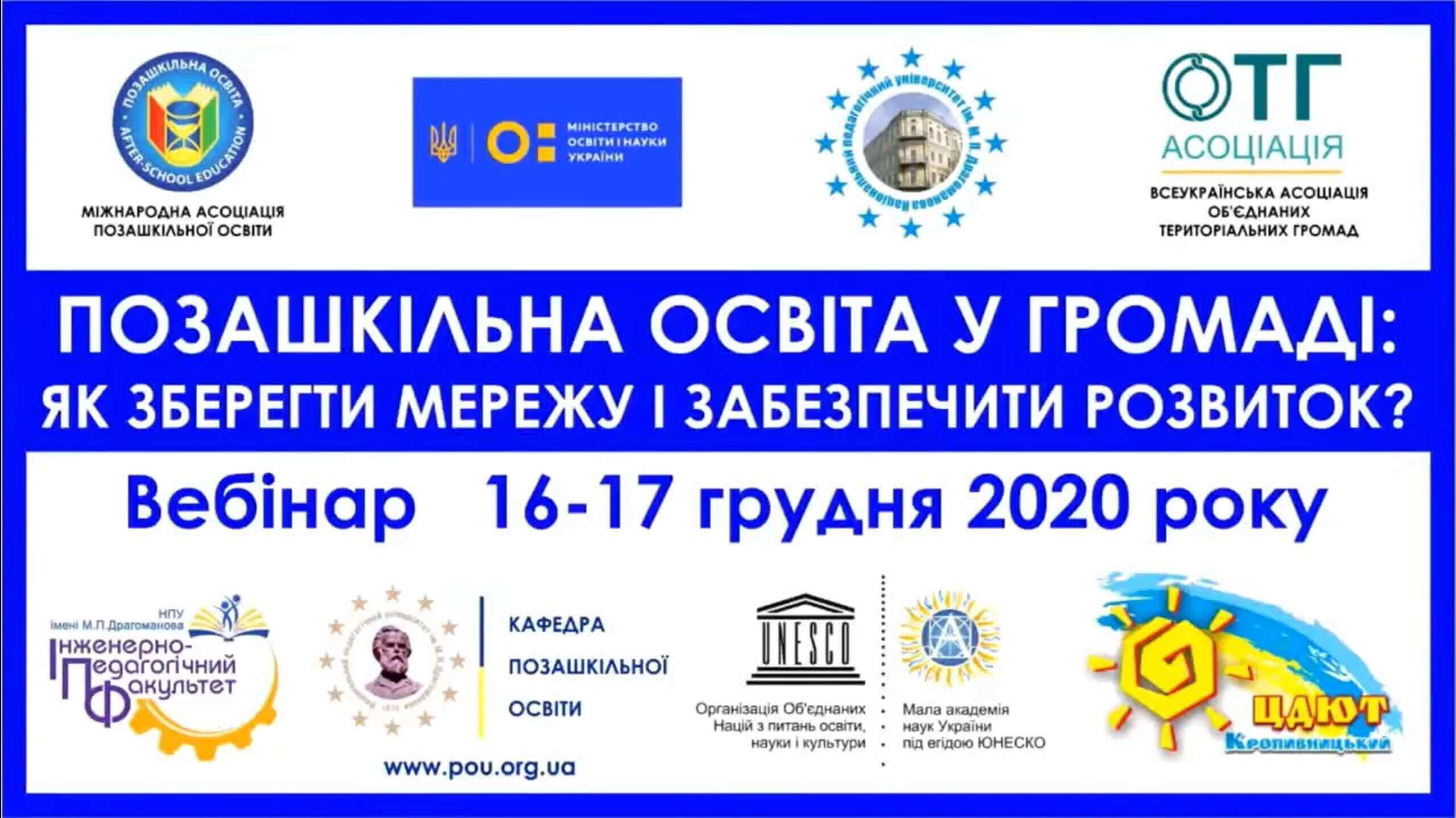 Вебінар «Позашкільна освіта у громаді: як зберегти мережу і забезпечити розвиток?» 16-17.12.2020 18.12.2020