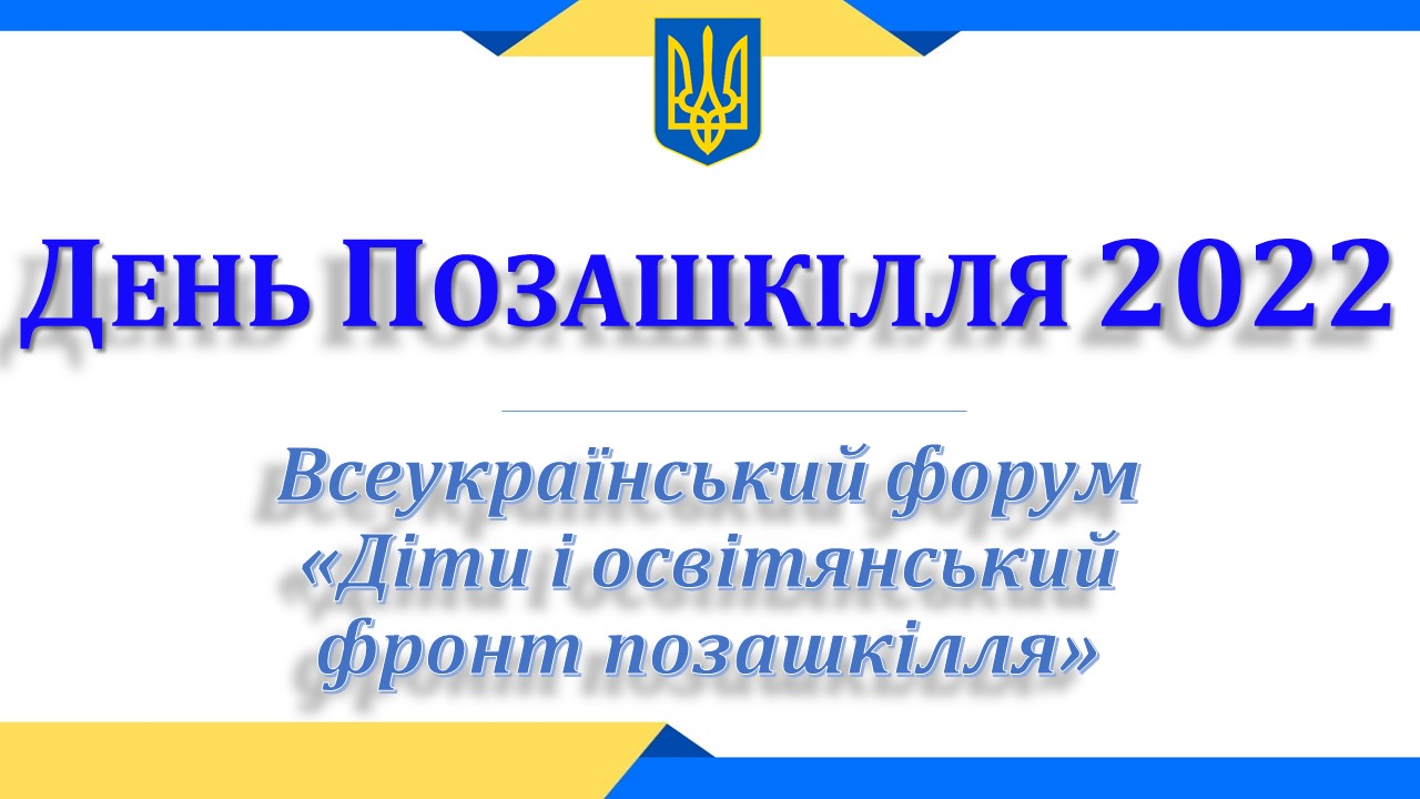 Комітет Верховної Ради України з питань освіти, науки та інновацій, Міністерство освіти і науки України, Національна академія педагогічних наук України, НПУ імені М.П.Драгоманова спільно з Міжнародною асоціацією позашкільної освіти та іншими парнерами проводять Всеукраїнський форум «Діти і освітянський фронт позашкілля» (лист МОН України №4/2517-22 від 15.09.2022 р.)