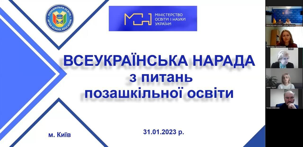 На кінець січня відділ позашкільної освіти та виховної роботи директорату дошкільної, шкільної, позашкільної та інклюзивної освіти МОН України спільно з громадською організацією «Міжнародна асоціація позашкільної освіти» провели Всеукраїнську нараду з питань позашкільної освіти.