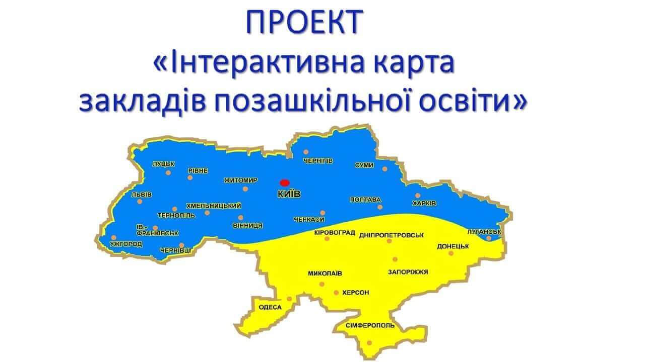 Інтерактивна карта закладів позашкільної освіти 02.01.2021 Шановні колеги! Запрошуємо Вас долучитися до Національного проекту “Інтерактивна карта закладів позашкільної освіти” до 30-річчя Незалежності України. Мета проекту – презентувати заклади позашкільної освіти у громадах на карті України. Для участі у проекті необхідно заповнити і надіслати реєстраційну форму за посиланням Учасники проекту отримають сертифікати Створюємо карту закладів позашкільної освіти разом! Долучайтеся! Участь безкоштовна