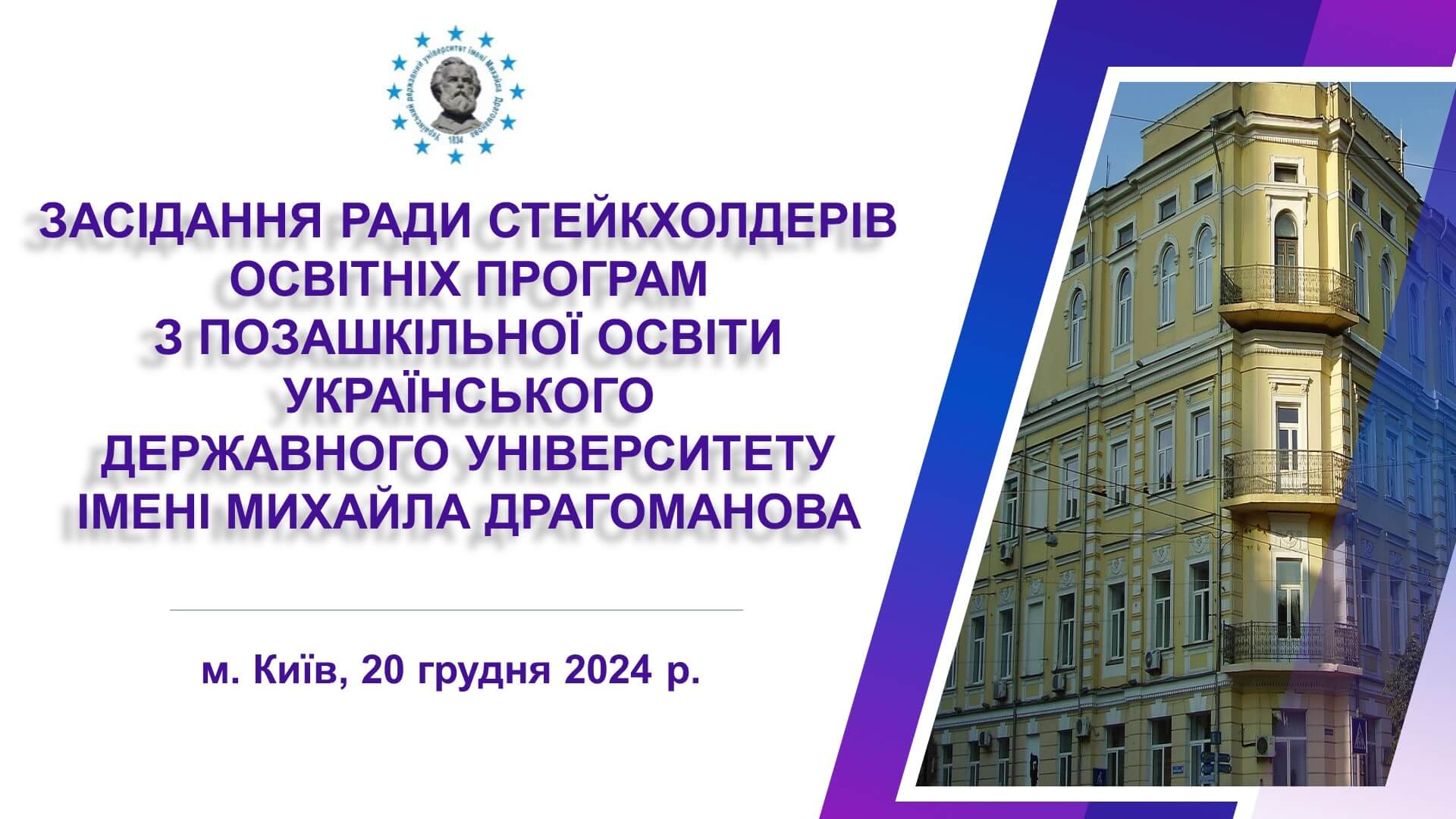 20 грудня 2024 року в Українському державному університеті імені Михайла Драгоманова відбулось засідання Ради стейкхолдерів освітніх програм з позашкільної освіти.