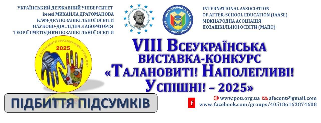 Відповідно до Положення про VІІІ Всеукраїнську виставку-конкурс «Талановиті! Наполегливі! Успішні! – 2025» підбито підсумки та визначено переможців.
