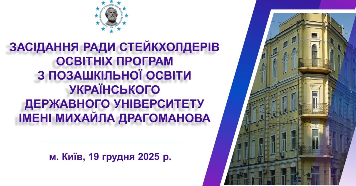 19 грудня 2025 року відбулося чергове засідання Ради стейкхолдерів освітніх програм з позашкільної освіти Українського державного університету імені Михайла Драгоманова.